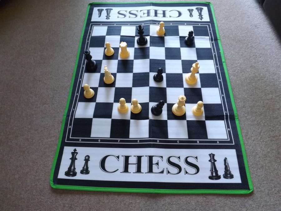 We have a large chess set for hire as a extra. This is approximately 1m square.