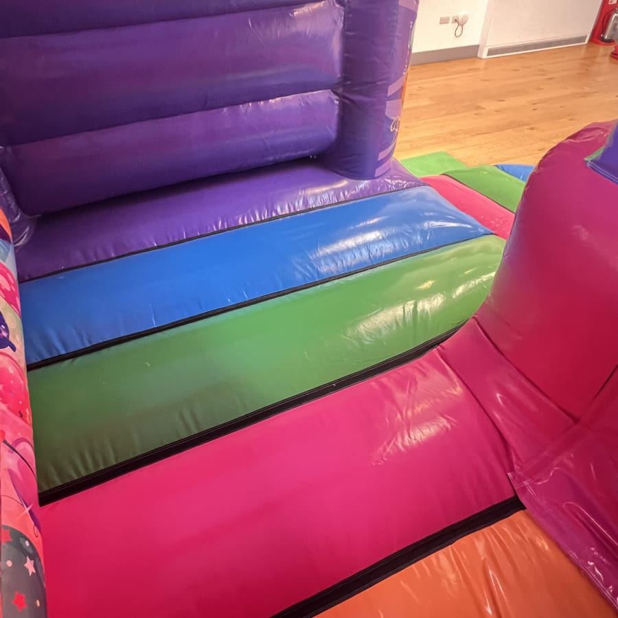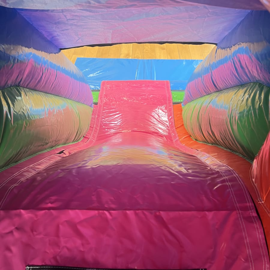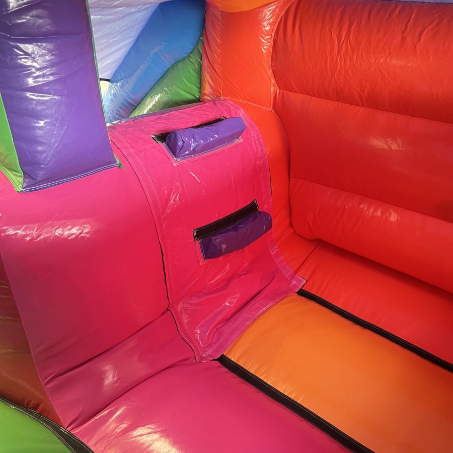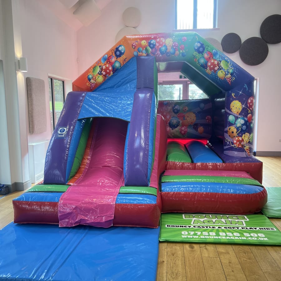 This Multi-Coloured party bounce and slide has a large bounce area and 4ft platform front slide, this Inflatable is guaranteed to be a hit with the children and will keep your little ones occupied for hours of non stop bouncing and sliding fun.